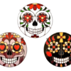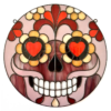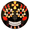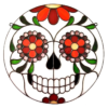 Vitrales inspirados en las calaveras de azúcar típicas de la festividad mexicana del día de los muertos. Estos vitrales están hechos artesanalmente con la técnica de vitralería Tiffany.